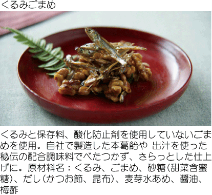 白砂糖・旨味調味料・保存料・合成着色料は不使用 調味料は無漂白、無添加、本醸造の本格素材を使用しています。